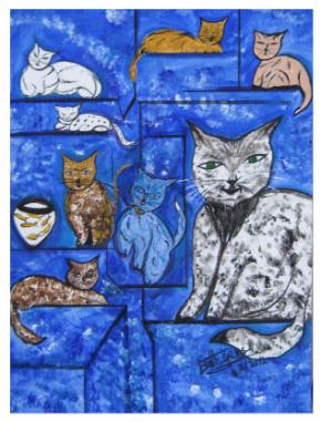 Motivene og figurene som jeg maler kommer fra mitt hjerte. Jeg elsker dyr og maler svært ofte, katter, papegøyer og ugler. Jeg maler også engler og bilder av barn. Dette er første gang jeg stiller ut i Oslo, og jeg håper jeg får en like god respons fra publikum her som jeg har fått i Nordland. Min teknikk er akryl på lerret og akryl på papir. Jeg vet ikke om jeg kan kommunisere mitt budskap om ytringsfrihet, spontanitet og autentisitet til de som besøker min utstilling, for i mine drømmer kan mine fantasier som jeg fester på lerretet noen ganger være uvirkelige. Men jeg håper de som ser mine bilder får forståelsen av min penselføring og mine sterke farger. Se min hjemmeside: http://www.123hjemmeside.no/Bethart-Elisabeth/21030764