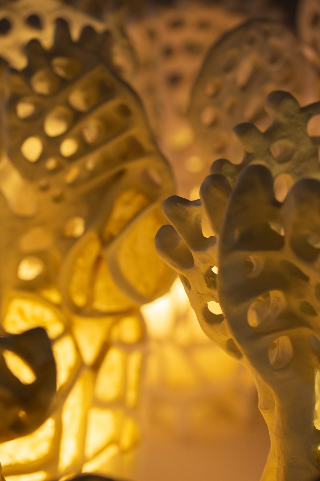 "Farvel" er tittelen på denne utstillingen, hvor nye akvareller og en installasjon bestående av lysobjekter, omtaler døden og flyktningekrisen på en metaforisk måte.
