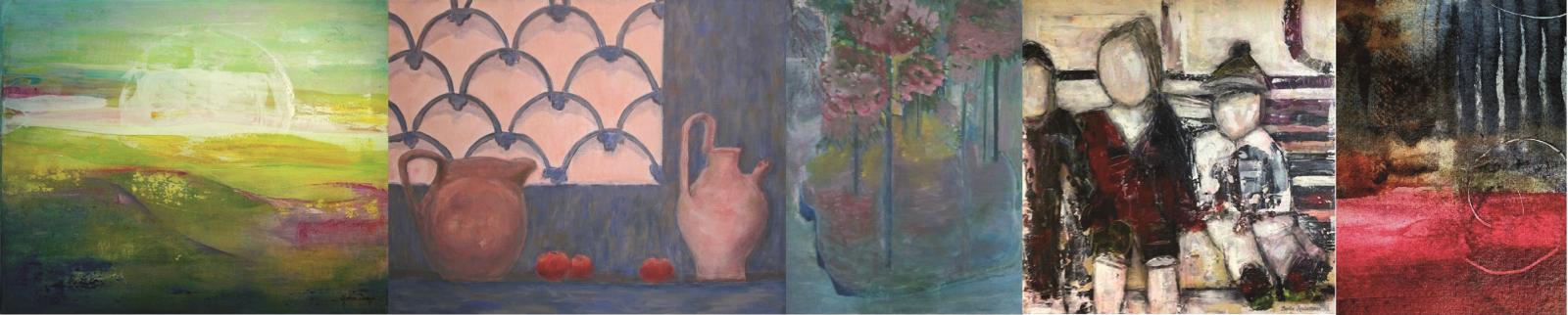 Akryl på lerret. Inspireres av lys, farger og former i natur og landskap.