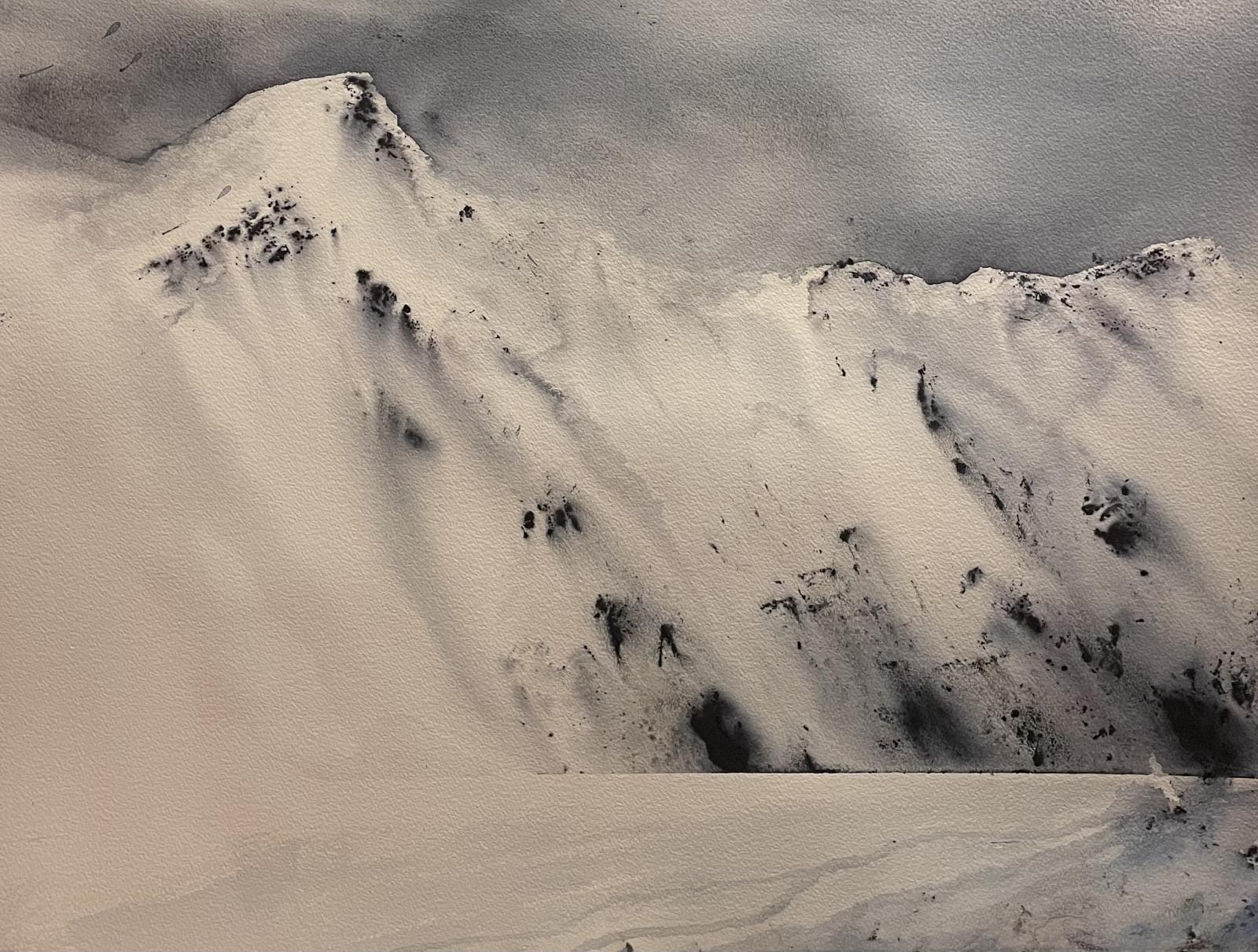 Vann og pigmenter 2023, del 2 - "I denne utstillingen har jeg fokusert på kontrastene mellom uberørt natur hvor det ikke er mennesker til stede, og urbane miljøer. Jeg har prøvd å beskrive de totalt forskjellige stemningene, fra naturens stillhet og meditative ro, til byens hektiske liv og herlige kaos. Jeg elsker begge deler. Jeg er opptatt av å beskrive lys, skygge og refleksjoner i dette spennet. Mitt mål er å fange de flyktige øyeblikkene, som når f.eks. de siste solstråler treffer byen.