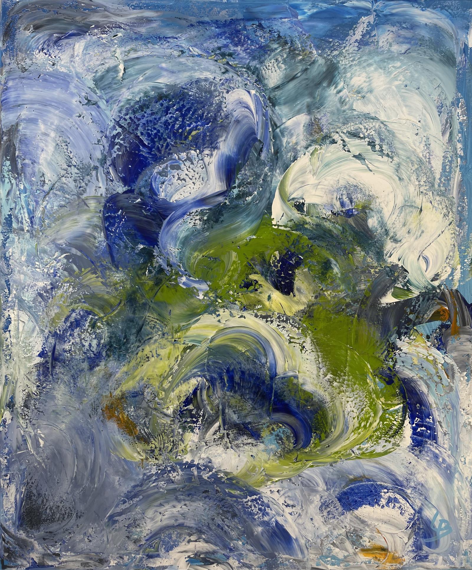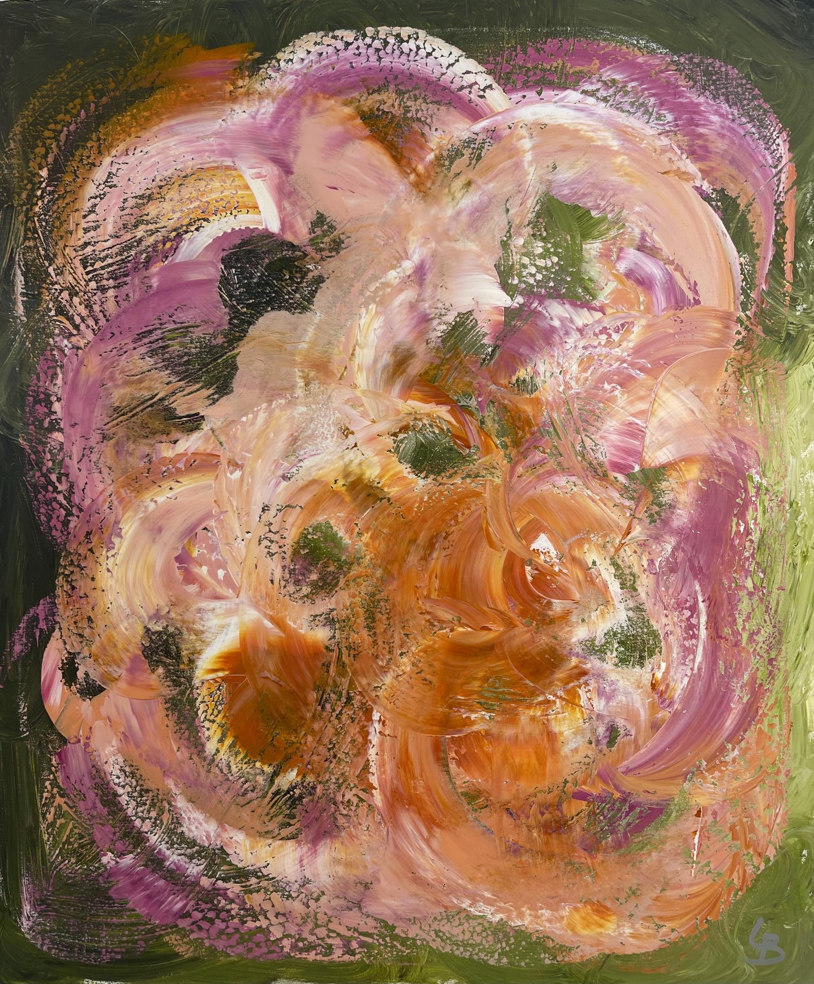 Hun arbeider med akryl på storformat bilder med mange lag. Hvert lag blir en historie, en historie om hvordan det startet og hvordan det vil ende. Det er gjennom lagenes kompleksitet at det blir enkelt.