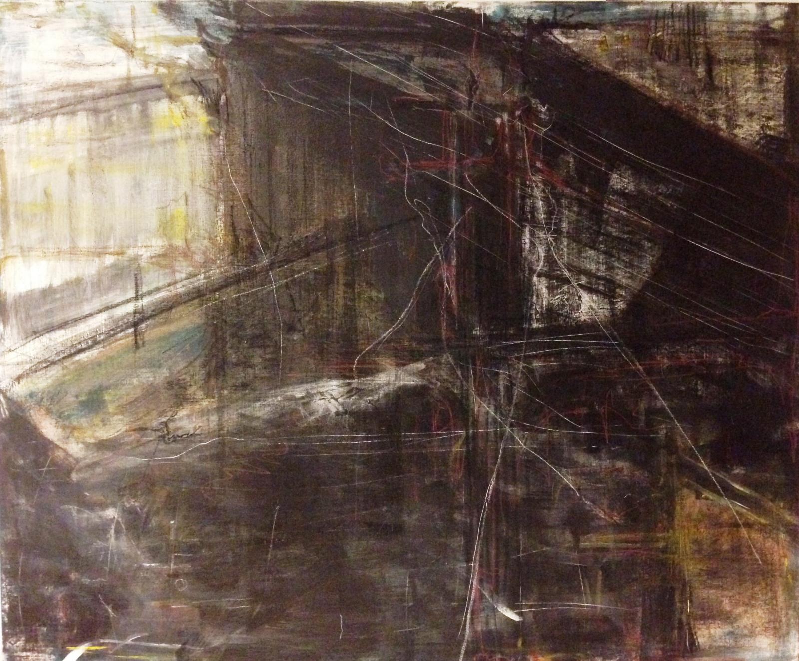 Lise Myhre's arbeider er en blanding av tegning og maling, og har et grafisk uttrykk.