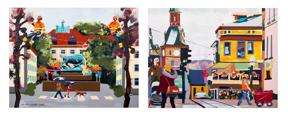 M.M.Malvin: “Dagen starter når sola står opp. Da hopper jeg på første trikk i hvilken som helst retning og går av der lyset fasinerer. Går gatelangs og fotograferer før jeg tar en trikk til der den måtte drive meg - og slik fortsetter det til dagen har dukket opp, på kryss og tvers i Oslo. Kan spesielt anbefales når det er nysnø. Gjennom skisser blir hundrevis av fotografier til maleri på lærett.”