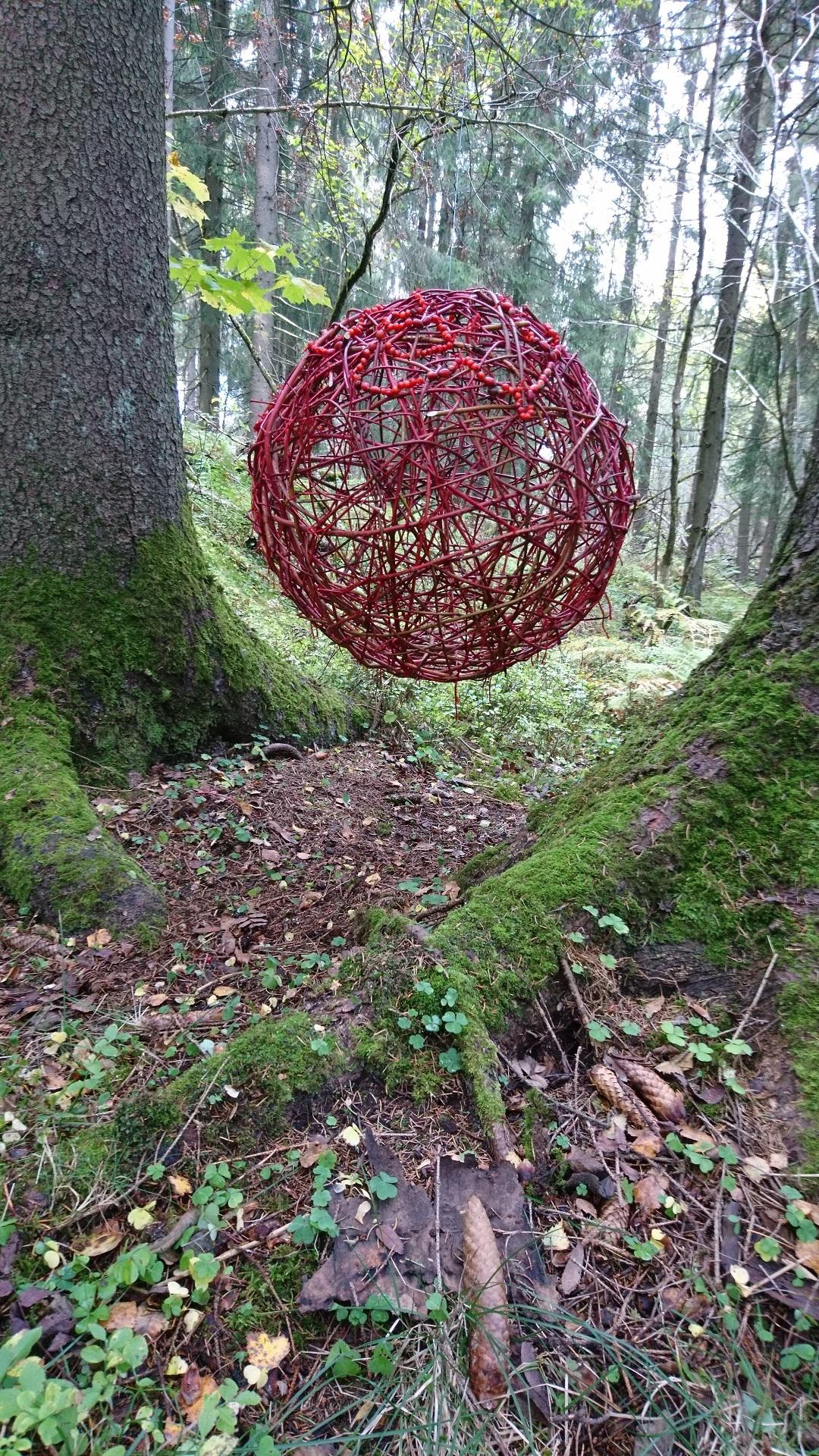 Hun viser på denne utstillingen glassarbeid, maleri, og foto-dokumentasjon fra et naturkunst- prosjekt hun gjorde i Lillomarka i 2017/18.