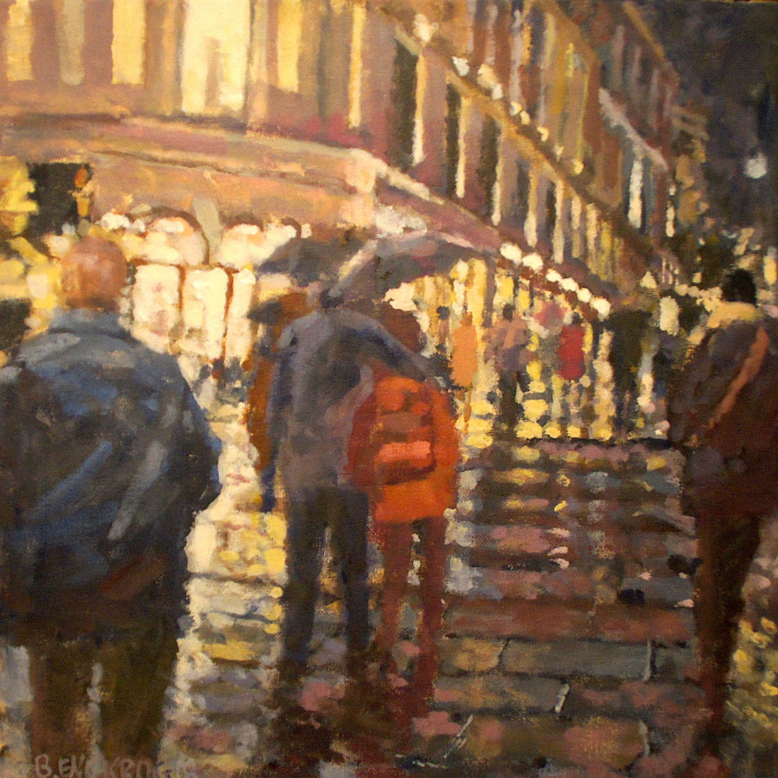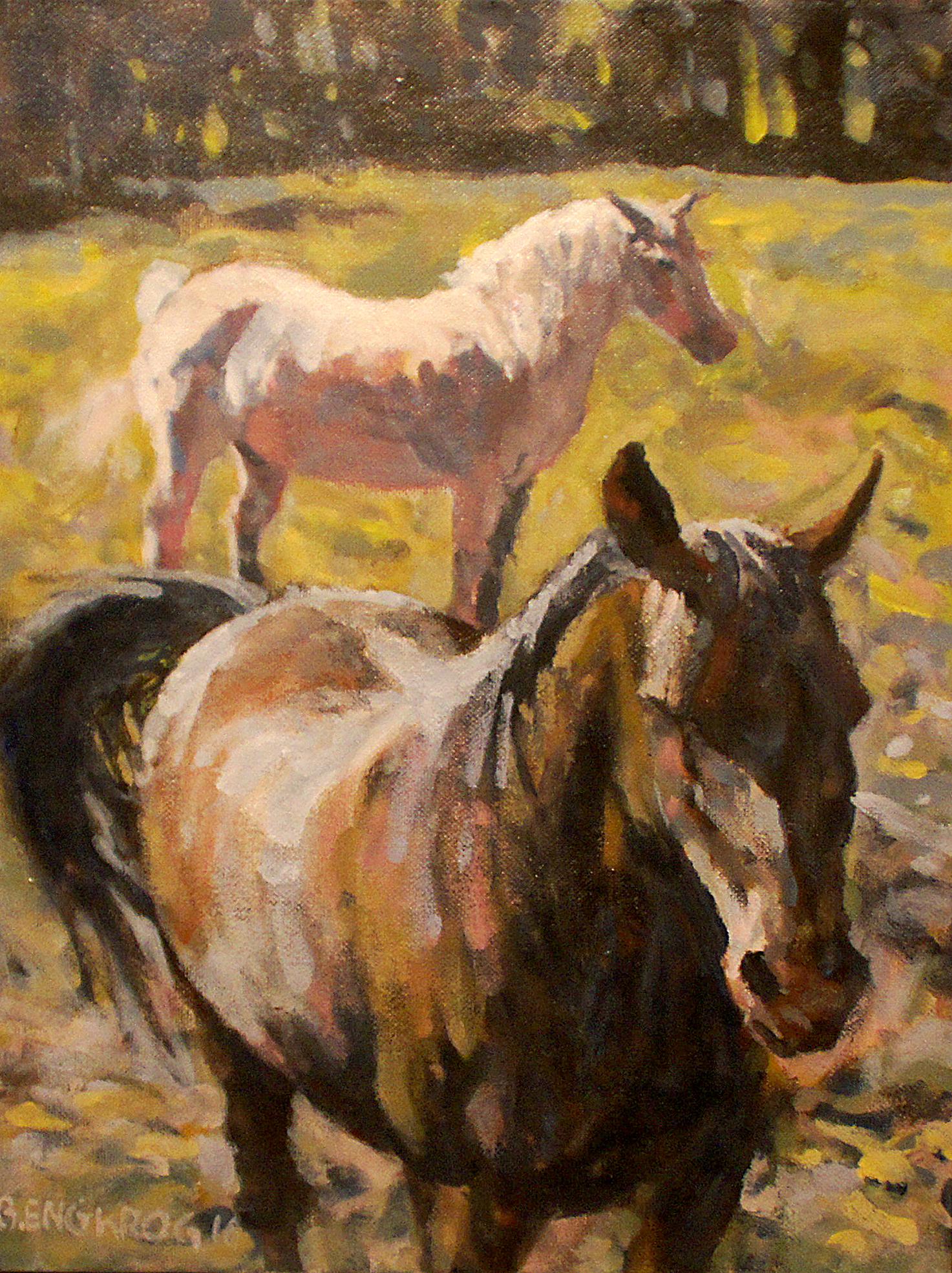 Bjørn Engkrog - Halvfigurative malerier i en slags nyimpresjonistisk stil - hvor farvene i lys og - ikke minst - skyggene er inspirasjonen og utfordringen for meg. Jeg syns heller ikke at det er galt at et maleri er vakkert, men forsøker å være generøs i koloritt og stemning, selv om jeg bruker dempede farger.