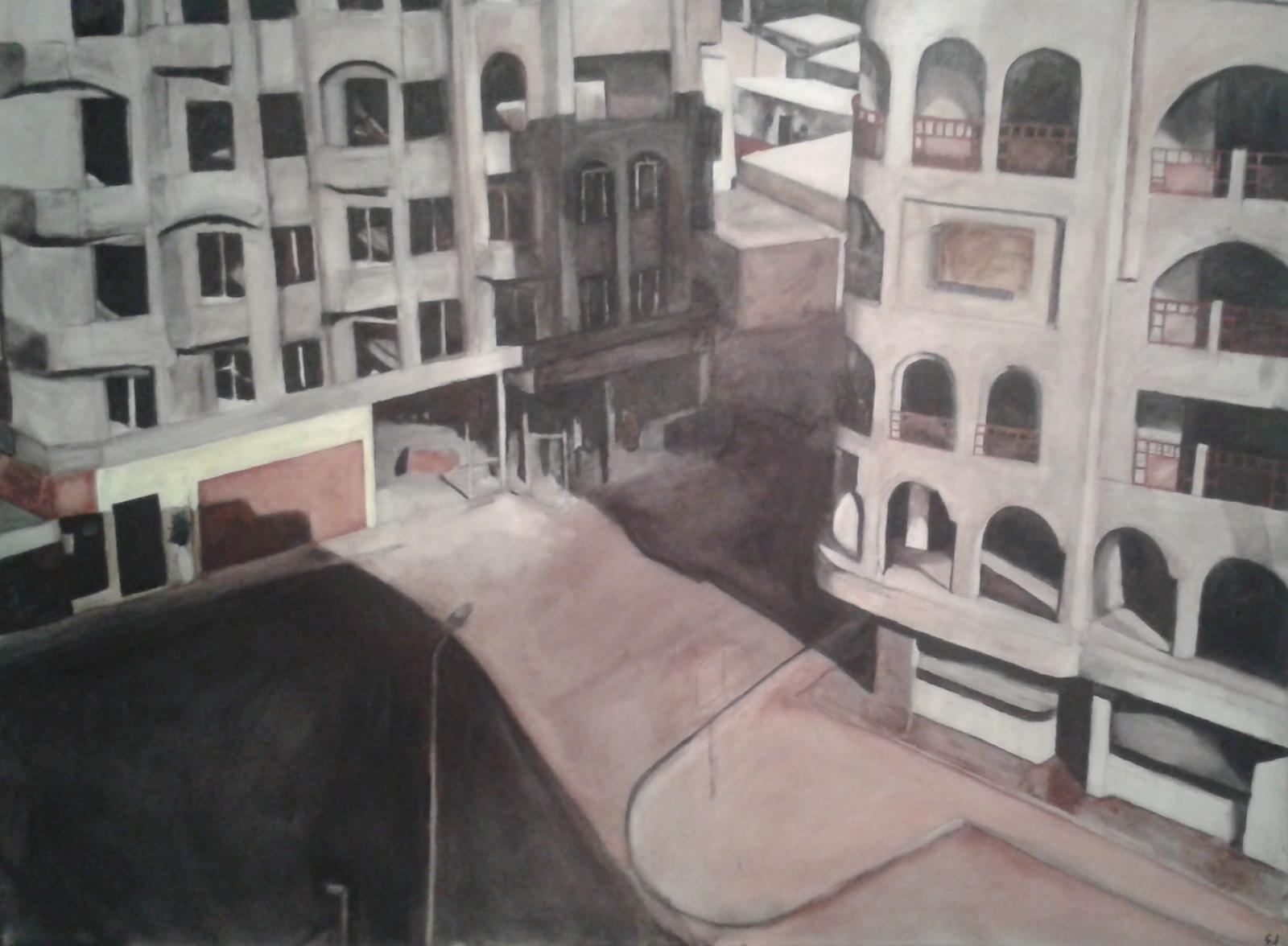 Arbeidene mine er som oftest realistiske og malt fra foto som jeg selv har tatt, sier Sebastian Johansson. Han skisserer med kull, maler med olje - og synes det er lyset og skyggen i et arbeide som gjør det interessant.