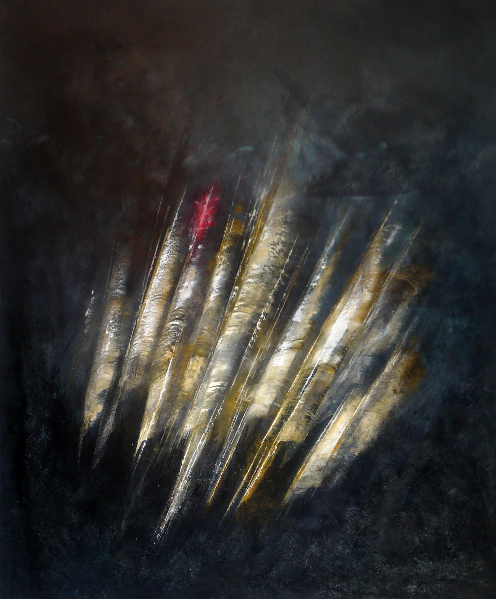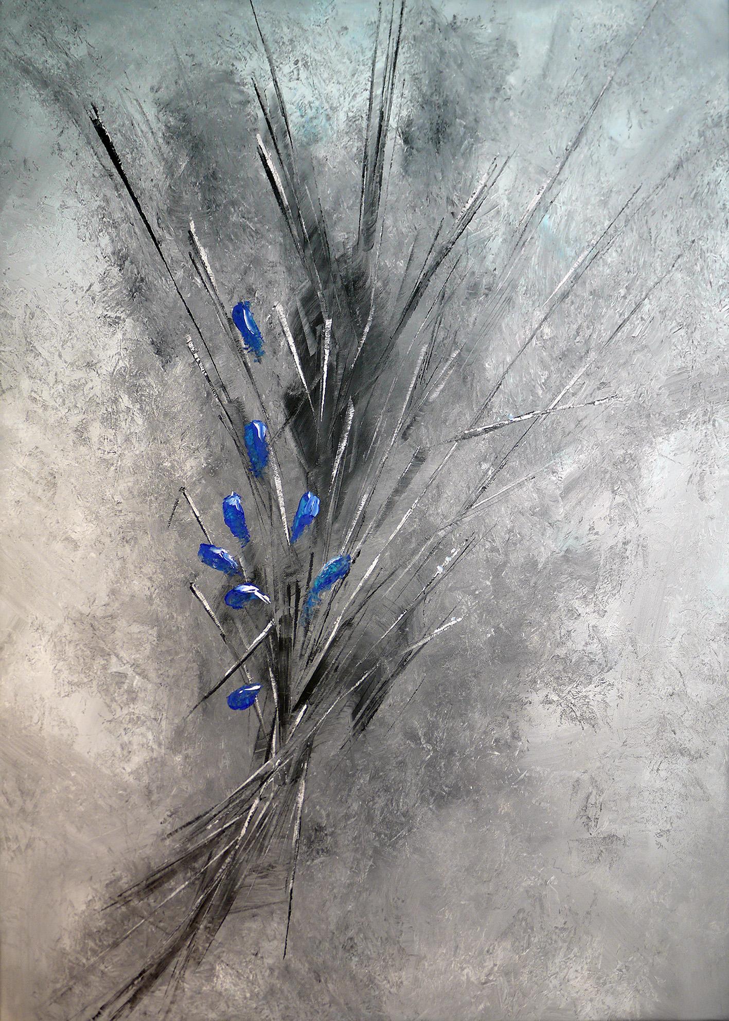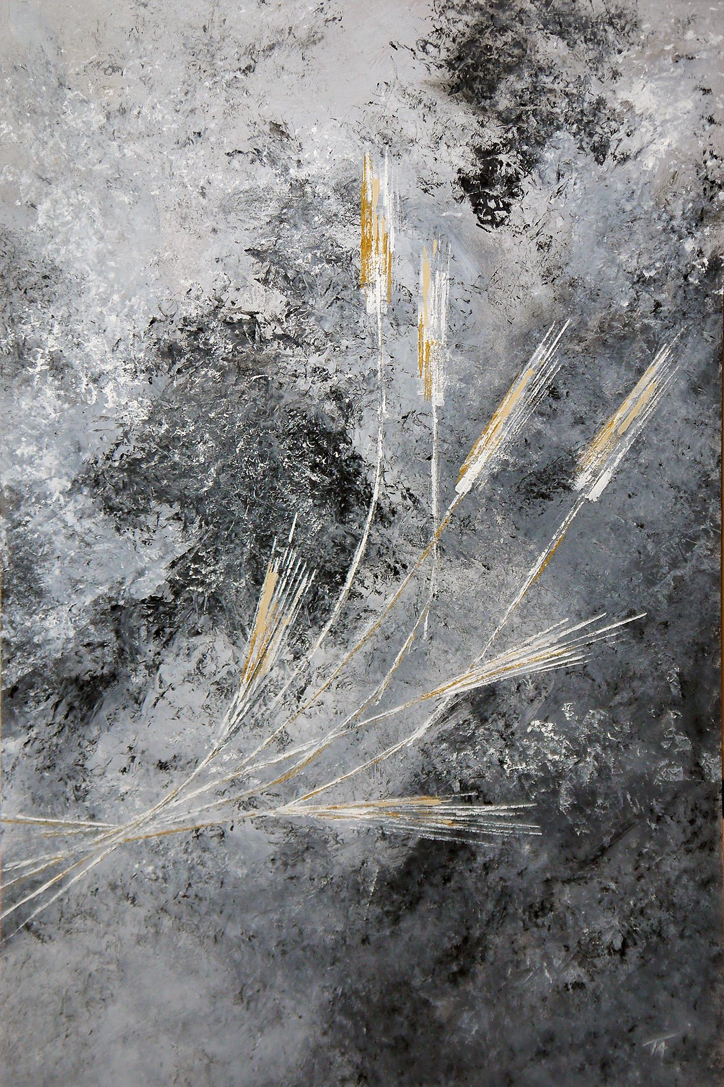 I mine malerier for denne utstillingen har jeg nemlig  "hoppet litt rundt" og prøvet å få frem detaljer fra en del av inntrykkene, men også prøvet å få frem helt enkle uttrykk fra det som skapes og gror rundt oss. De spinkle stråene og sivet har snakket til meg i mange år. Geiteramsen som er en plage for mange, er en vakker plante, også mens den har avblomstret og sender sine dun med høstvinden for å erobre nye områder.