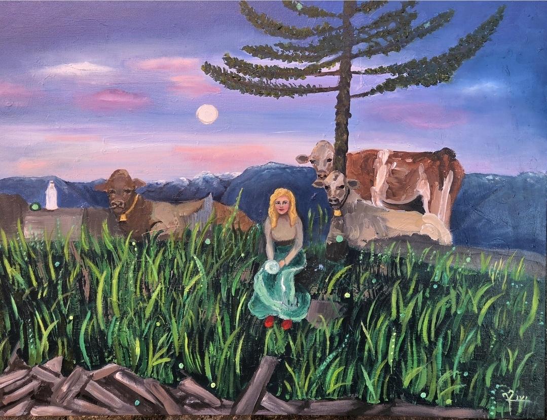 Vivi’s Art circles around themes from her own life, the inner child, feminine strength, motherhood, human existence, individual development, the journey of life and a heightened awareness of mystery.